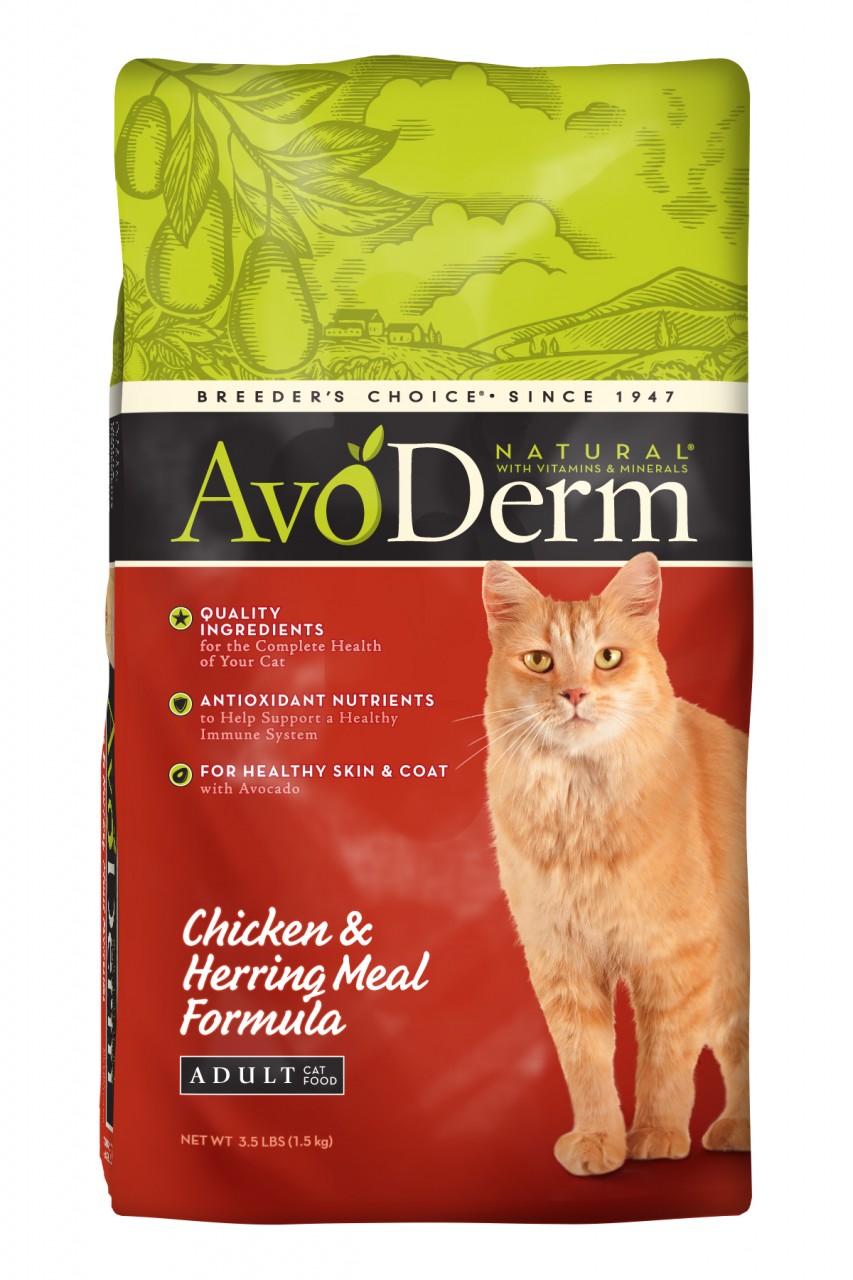 AvoDerm®成年雞和鯡魚提供健康均衡的營養你的貓。高品質的原料保證您提供最佳的營養你的寵物需要。